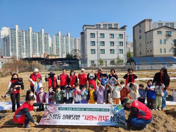 이날 초평동 지역사회보장협의체 이정숙 위원장을 포함해 10명의 협의체 위원들이 참여했는데 인근 어린이집 아동들도 현장체험학습 일환으로 함께 감자심기 활동을 했다.