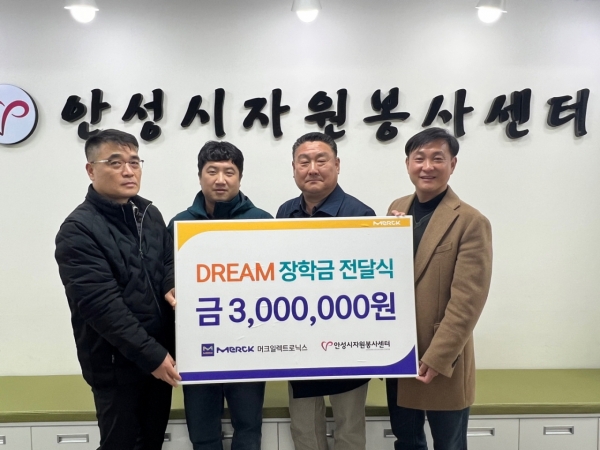 [금요저널] 머크 온누리愛자원봉사클럽은 지난 27일 사회공헌활동으로 2023년 머크 드림장학금을 안성시자원봉사센터에 기탁했다.
