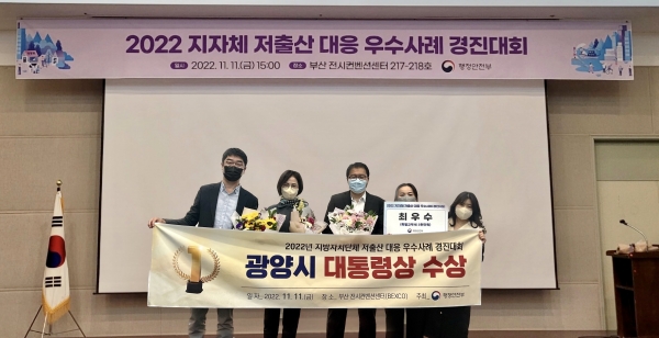 또, ‘아이 양육하기 좋은 도시’의 여건 마련을 위해 2019년 전국 최초 보육 관련 ‘局’을 신설해 보육 발전에 주력한 결과 2019년 행정안전부 주관 저출산 우수시책 우수상 2020년 보건복지부 주관 보육발전 유공 대통령 기관 표창 2021년 보건복지부 주관 보육 정책 최우수 기관 표창 2022년 지자체 저출산 우수사례 대통령상 등을 수상해 4년 연속 수상의 영예로 전국 제일의 보육 으뜸 도시임을 증명했다.