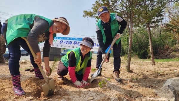 참석자들은 관산읍 수동마을 쉼터공원과 인근 공휴지에 은행나무, 소나무, 철쭉, 체리 나무 등 총 500주의 나무를 식재했다.