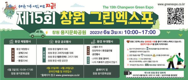 [금요저널] 창원특례시는 시민환경교육 한마당인 제15회 창원그린엑스포 슬로건을 ‘우리는 기후시민, 바로지금’으로 정하고 공식 누리집을 오픈해 본격적인 시민참여 홍보를 시작한다고 29일 밝혔다.