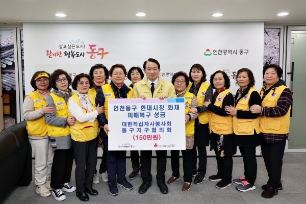 대한적십자사 봉사회 인천 동구지구협의회는 지난 28일 동구를 방문, 현대시장 화재 피해 복구를 위한 성금 150만원을 기탁했다.