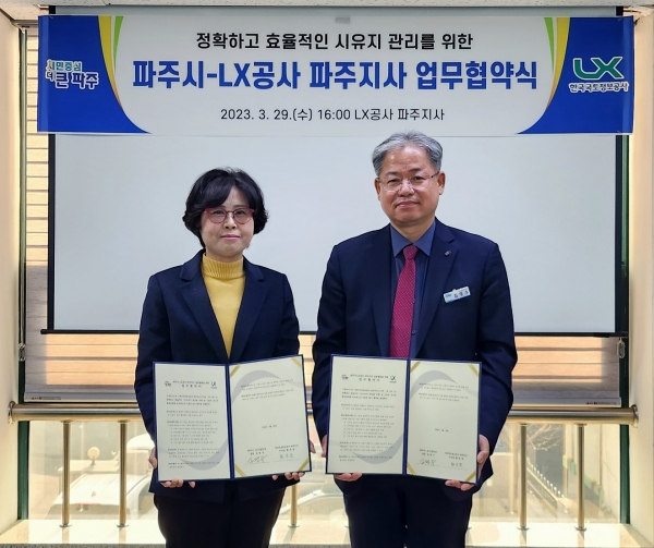 [금요저널] 파주시와 한국국토정보공사 파주지사는 29일 정확하고 효율적인 시유지 관리를 위해 업무협약을 체결했다.