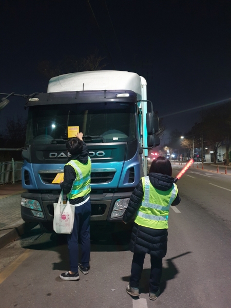 이번 단속은 화물차량 전세버스 등 대형차량이 불법주차로 운전자의 시야를 가려 교통사고를 유발하고 엔진소움 및 매연, 보행자 통행 불편 등으로 지속적으로 민원이 제기됨에 따라 이뤄졌다.