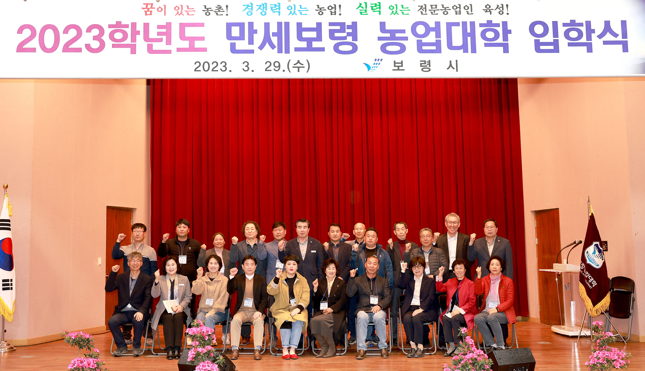 보령시는 29일 보령시농업기술센터 농업교육관에서 만세보령농업대학 입학생 57명과 가족 등이 참석한 가운데 2023년 입학식을 개최했다.