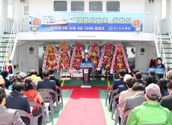 군은 신규 여객선 영광사랑호의 운항을 축하하고 안전운항을 기원하는 취항식을 29일 염산면 향화도항 영광사랑호 내에서 강종만 영광군수와 도·군의원, 여객선사, 지역주민 30여명이 참석한 가운데 신진해운 주최로 성황리에 개최했다.