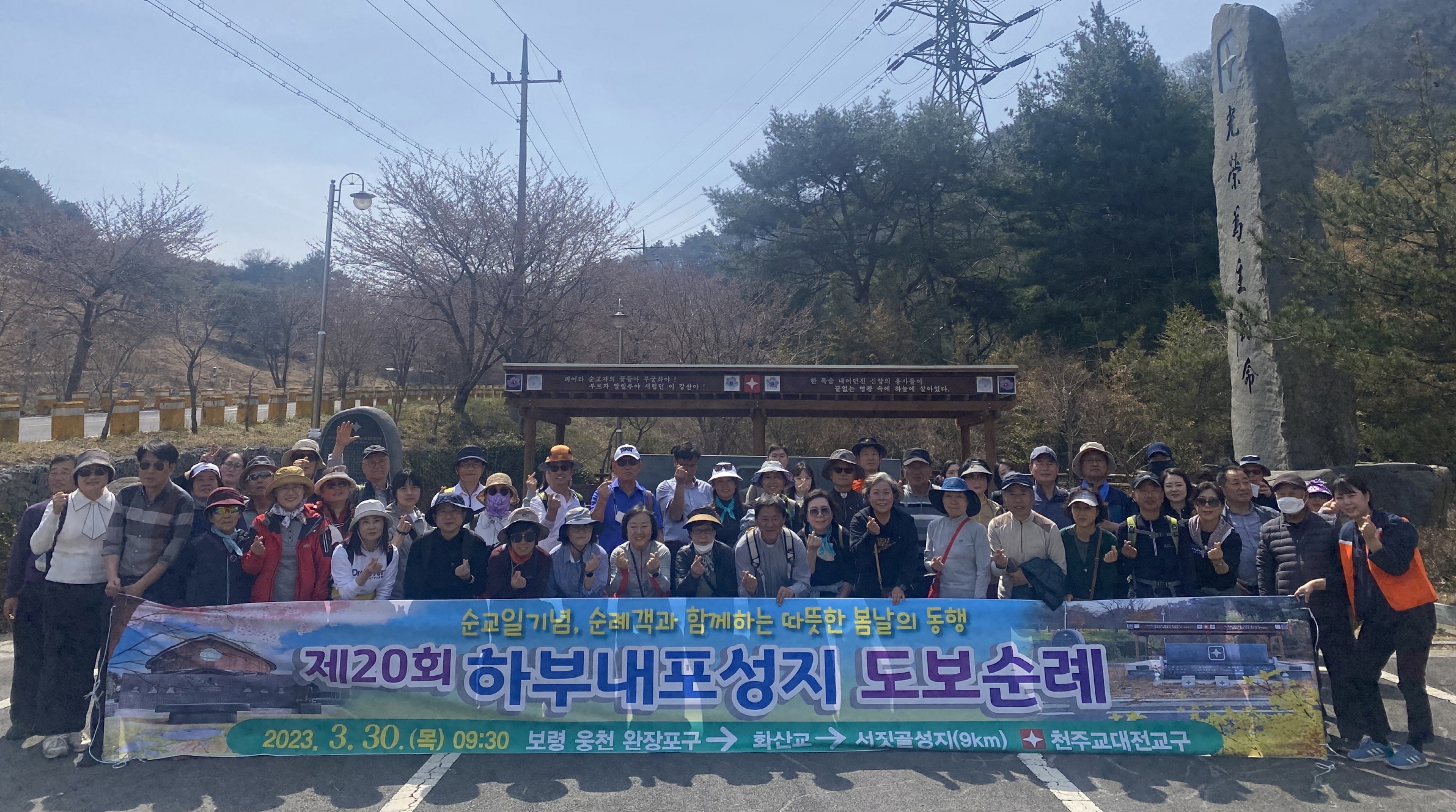 순례코스는 완장포구를 시작으로 웅천읍 의용소방대, 한내노인회관, 성동1리 마을회관, 배챙이못, 화산교를 거쳐 서짓골성지까지 9km에 달했다.
