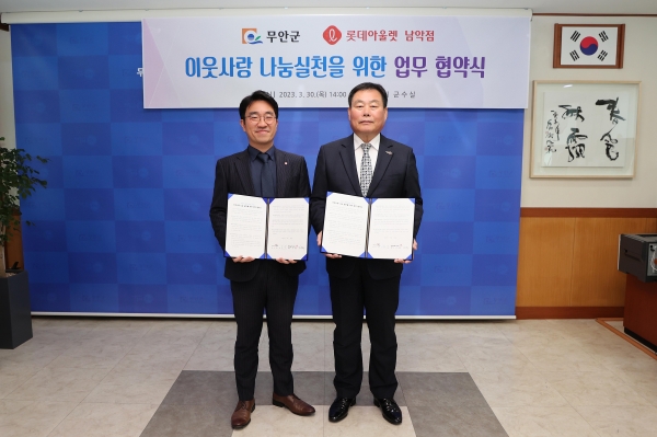 [금요저널] 전남 무안군은 지난 30일 롯데아울렛 남악점과 이웃사랑 나눔 실천을 위한 업무협약을 체결했다.