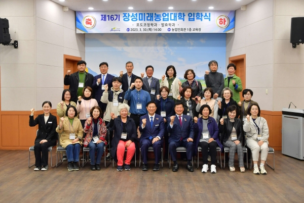 장성군에 따르면 제16기 장성미래농업대학 입학생 50명이 농업인회관 1층에서 열린 입학식에 참석해 힘찬 출발을 다짐했다.