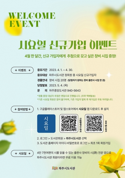 파주시 도서관, 4월 한 달간 ‘시요일’ 신규 가입 이벤트
