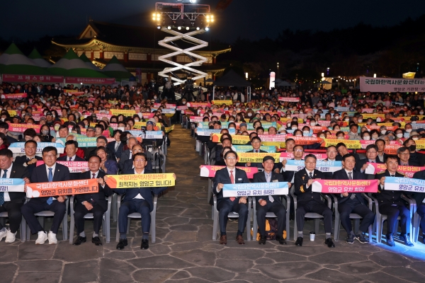 [금요저널] 전남 영암군은 30일 왕인문화축제 개막 행사와 함께 6만 영암군민과 16만 향우들의 염원을 담아, 문화재청에서 추진 중인 국립마한역사문화센터의 영암 유치를 위한 결의대회를 개최했다고 밝혔다.