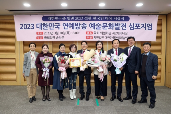 [금요저널] 수원특례시의회 김기정 의장은 지난 30일 오후 2시 국회 의원회관 제2세미나실에서 진행된 사단법인 대한민국연예예술인연합회에서 주최, ‘대한민국을 빛낸 ‘2023 선한 한국인 대상’ ’ 시상식에서 기초의정 대상을 수상했다.