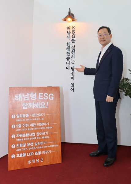 또한 청정해남을 위한 60만그루 탄소흡수원 확충, 주민참여형 자원순환 사업, 더 깨끗한 해남만들기 프로젝트로 등 친환경 정책을 추진하고 기후변화 대응 국내 최대 농업 클러스터 조성, 저탄소 ESG농업 확산 정책 추진 등 군정의 전 분야에 걸쳐 ESG 가치를 적극 도입해 추진하고 있다.