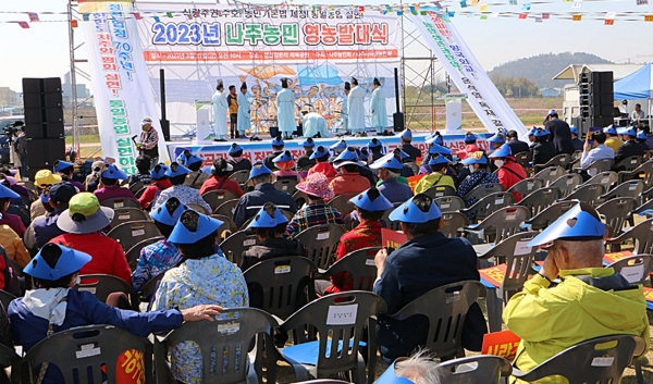 전라남도 나주시는 31일 영산강 둔치 체육공원에서 나주농민회, 여성농민회 주관으로 ‘2023년 나주 농민 영농발대식’ 행사가 열렸다고 밝혔다.