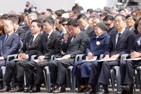 이어 김창범 4·3희생자유족회장과 오영훈 제주도지사의 인사말에 이어 한덕수 국무총리가 윤석열 대통령의 추념사를 대독했다.