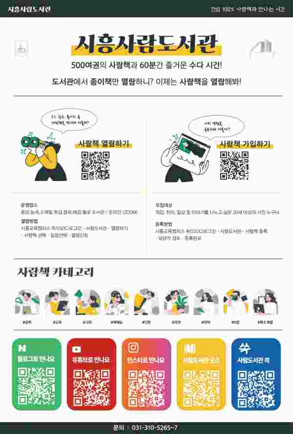 시흥사람도서관 쇼츠 영상 등 다양한 시흥사람도서관 콘텐츠를 즐겨보고 싶다면 스마트폰 카메라를 활용해 포스터의 QR코드를 스캔하면 누구나 쉽게 이용할 수 있다.