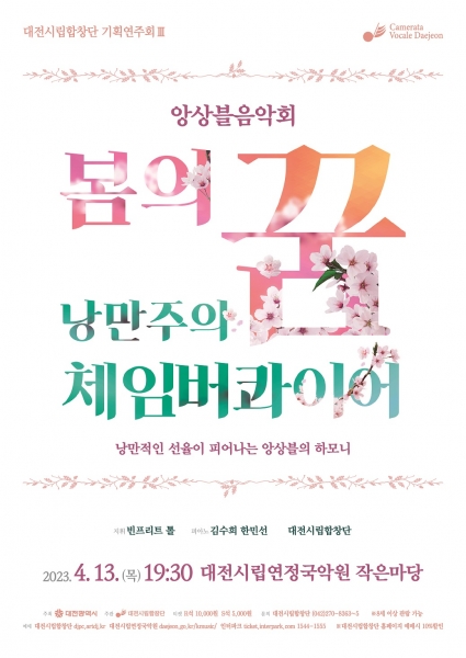 [금요저널] 대전시립합창단 앙상블음악회 “봄의 꿈 : 낭만주의 체임버콰이어”가 오는 4월 13일 오후 7시 30분 대전정국악원 작은마당 무대에 오른다.