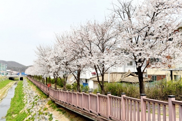 파주 광탄면 분수천 산책로는 벚꽃과 함께 호젓하게 산책하기 좋다.