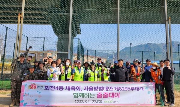 [금요저널] 양주시 회천4동은 지난 3일 회천4동 체육회, 자율방범대와 육군 제8295부대와 함께 깨끗한 거리 만들기 행사를 실시했다.