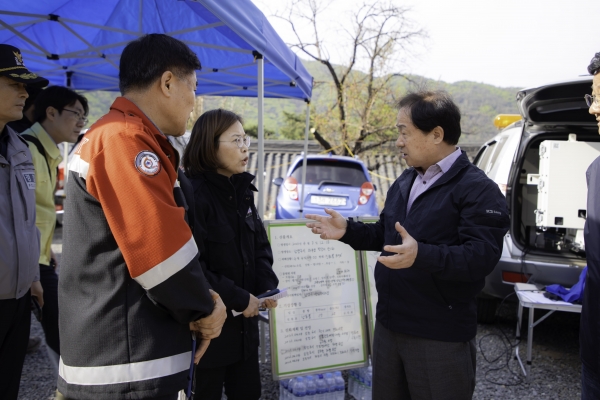예봉산장에 마련된 지휘소에서 야간 진화 작업에 대한 보고를 받는 등 진화 상황을 살폈다.
