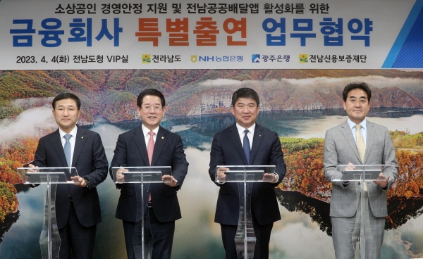 협약식에는 김영록 전남도지사와 정양수 전남신용보증재단 이사장, 정재헌 NH농협은행 전남본부장, 고병일 광주은행장 등이 참석했다.