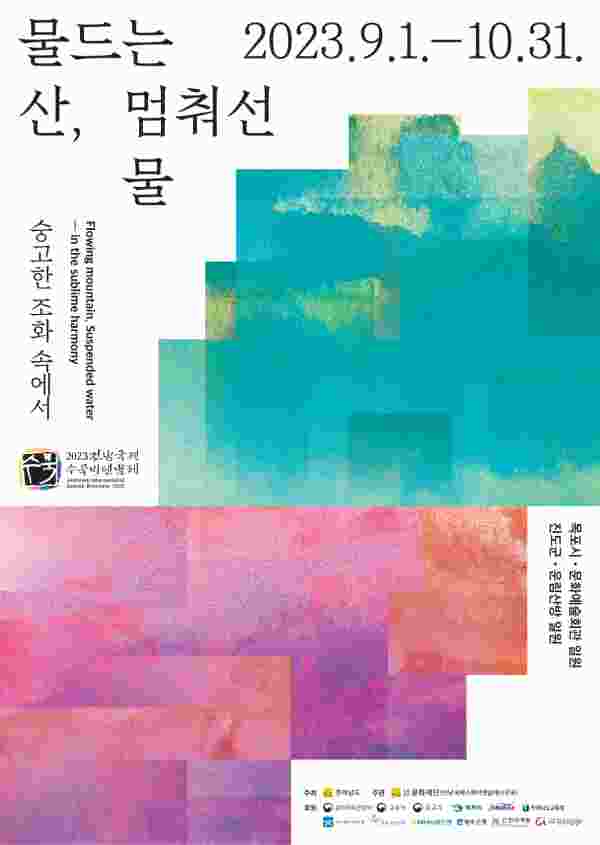 올해 세 번째를 맞는 ‘2023 전남국제수묵비엔날레’는 ‘물드는 산, 멈춰선 물- 숭고한 조화 속에서’라는 주제로 9월 1일부터 10월 31일까지 목포시 문화예술회관 일원과 진도군 운림산방 일원에서 펼쳐진다.