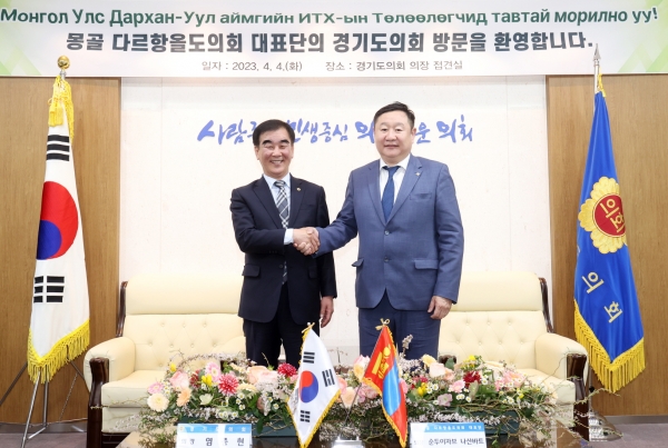한편 경기도의회는 2014년 3월 14일 다르항올 도의회와 우호교류협력 합의서를 체결한 이래 총 12회에 걸쳐 상호 방문하고 경기도 불용 소방차량을 전달하는 등 친선관계를 맺어왔다.