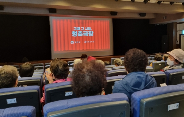 ‘청춘극장’은 도봉구민회관 소공연장에서 매월 마지막 주 수요일 오후 3시에 어르신 200여명을 대상으로 영화를 상영한다.