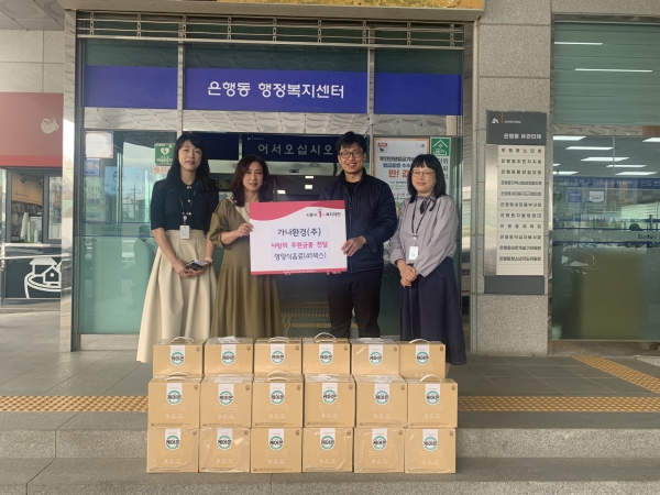 권숙 은행동장은 “취약계층의 건강을 생각한 영양식을 준비해 주신 가나환경에 감사하다 후원물품은 물론, 가나환경 대표님의 따뜻한 마음까지 잘 전달하겠다”고 감사 인사를 전했다.