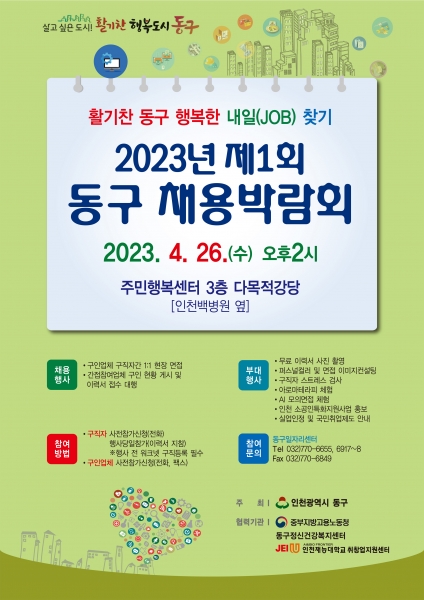 [금요저널] 인천 동구가 오는 26일 오후 2시 주민행복센터에서 2023년 제1회 채용 박람회를 개최한다.