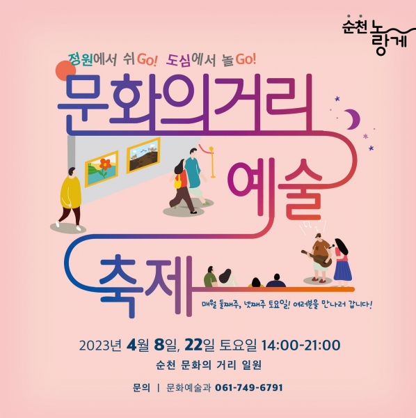 [금요저널] 순천시는 오는 8일 토요일 ‘문화의거리 예술축제’를 개최해 순천시를 방문한 정원박람회 관광객을 도심으로 유인하겠다고 밝혔다.