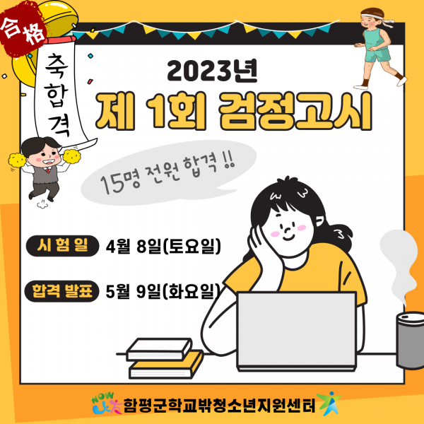 함평군학교밖청소년지원센터는 매년 검정고시에서 높은 합격률을 달성하며 학교밖 청소년들의 상위 학교 진학에 도움을 줄 뿐만 아니라 자격증 취득, 직업학교 연계, 취업 및 창업에도 적극적인 도움을 주고 있다.