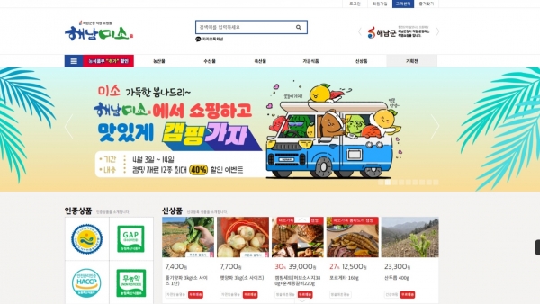 이번 기획전에서는 해남미소에서 인기리에 판매되고 있는 12개 상품을 최대 40% 할인한다.