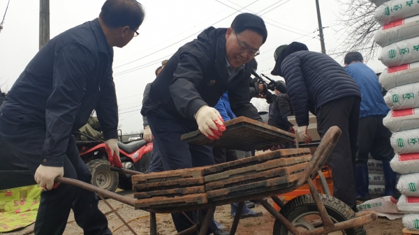 [금요저널] 강수현 양주시장은 지난 6일 광적면 효촌리 못자리 설치 현장현장을 방문하며 분주하게 작업하고 있는 농업인을 노고를 격려하고 일손을 보탰다.