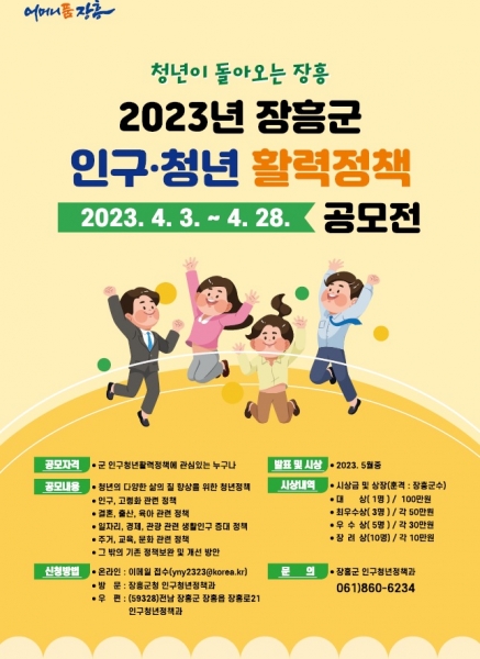 [금요저널] 장흥군은 지역 맞춤형 2023년 인구·청년 활력정책 공모전을 실시한다고 밝혔다.