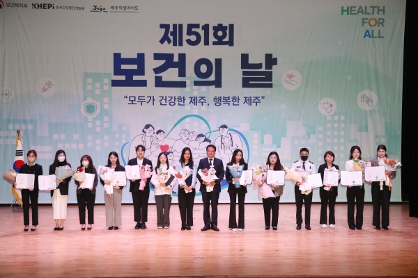 [금요저널] 김희현 제주특별자치도 정무부지사는 7일 오전 설문대여성문화센터에서 열린 제51회 보건의 날 기념식에 참석해 도민 보건 향상과 지역사회 발전에 기여한 유공자 59명에게 포상을 수여했다.