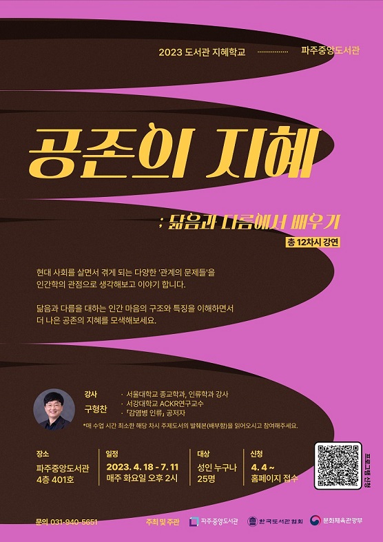 파주중앙도서관은 4월 18일부터 ‘공존의 지혜: 닮음과 다름에서 배우기’라는 주제로 강의를 진행한다.