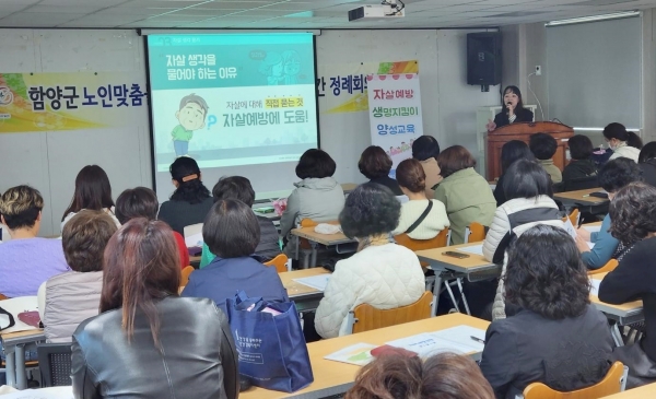 [금요저널] 함양군은 10일 우울증 조기발견을 통한 자살 예방을 위해 노인맞춤돌봄서비스사업 수행인력 132명을 대상으로 생명지킴이 양성교육 및 노인우울검사 사전교육을 실시했다.