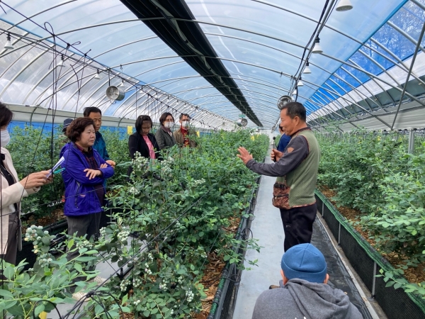 이날 교육생들은 다양한 품종의 블루베리를 재배하고 있는 선도 농가의 농장을 방문해 품종별 재배현황 및 전정 상태 등을 관찰했다.