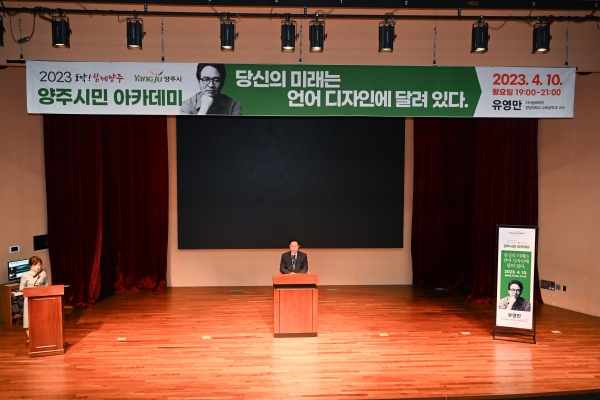 지난달 27일 소통전문가 김창옥 대표의 명사특강에 이어 열린 두 번째 양주시민 아카데미에는 지식생태학자 유영만 한양대 교수를 초청해 ‘당신의 미래는 언어 디자인에 달려 있다’는 주제로 유쾌한 강연이 펼쳐졌다.