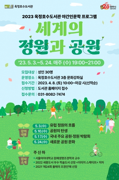 양주시 옥정호수도서관, 야간 인문학 프로그램 ‘세계의 정원과 공원’수강생 모집