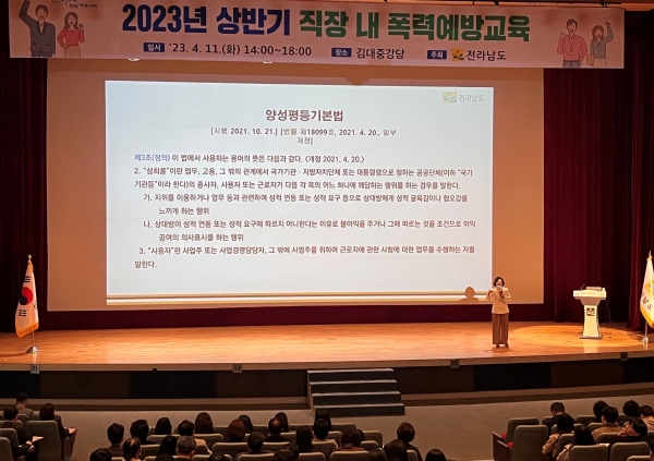 또 11일 도청 김대중강당에서 성인지 감수성 향상을 위해 직원 600여명을 대상으로 폭력 예방 교육을 진행했다.