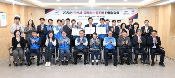 [금요저널] 안산시는 지난 11일 전국공무원노동조합 경기지역본부 안산시지부, 안산시청공무원노동조합과 단체협약을 체결했다고 12일 밝혔다.