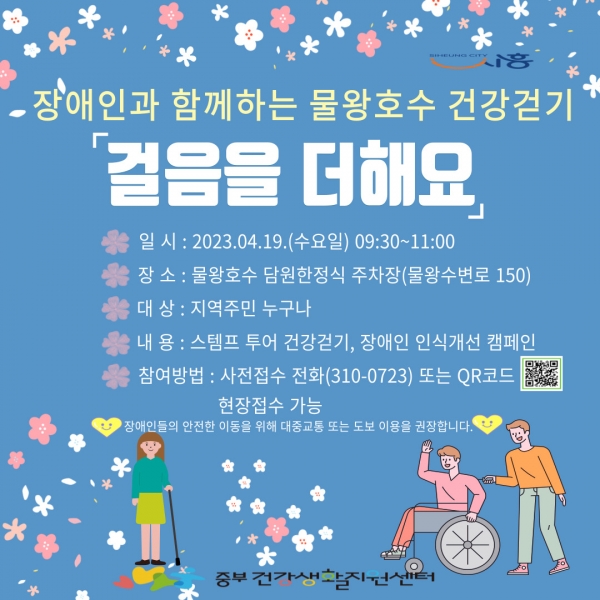 [금요저널] 시흥시는 장애인의 날을 기념해 ‘걸음을 더해요’ 물왕호수 건강걷기 행사를 오는 19일에 개최한다.