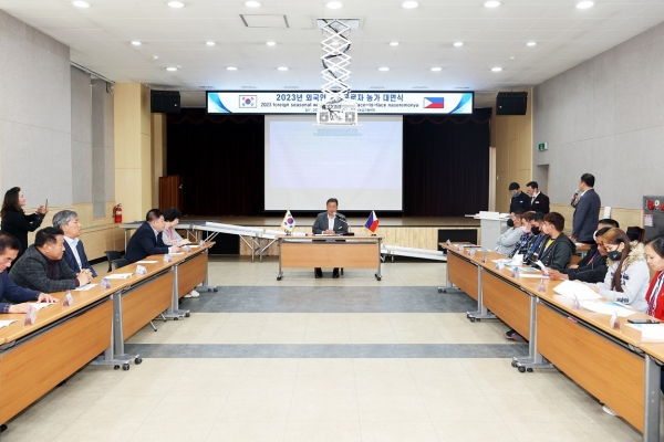 [금요저널] 파주시는 12일 농업기술센터에서 필리핀 제너럴 마리아노 알바레즈시에서 입국하는 외국인 계절근로자를 환영하는 대면식을 가졌다.