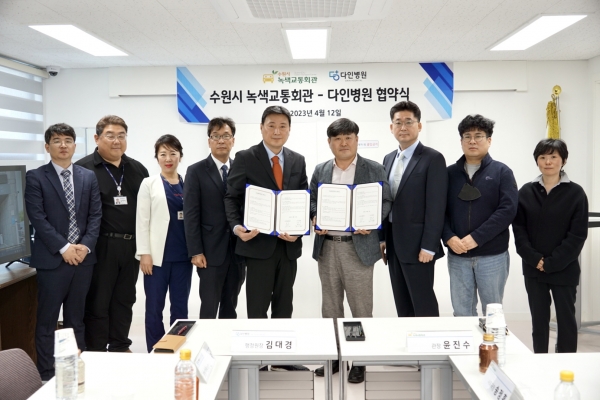 이날 협약식에는 윤진수 수원시녹색교통회관 관장, 김대경 수원 다인병원 행정원장 등이 참석했다.