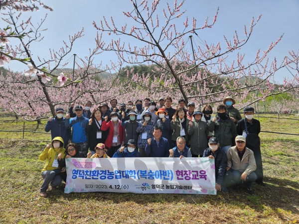 [금요저널] 영덕군 농업기술센터가 주관하는 2023년 영덕친환경농업대학의 복숭아반 교육생들이 지난 12일 관내 6곳의 선도 농가를 순회하며 품종별 재배현황과 전정상태를 관찰하는 등의 현장 교육을 시행했다.