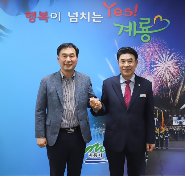 [금요저널] 경기도의회 안전행정위원회 소속 윤종영 의원은 지난 7일 계룡시청을 방문해 이응우 계룡시장과 군 문화행사, 육·해·공군본부와의 상생협력 등에 관한 의견을 교환하며 협력 관계 유지와 계룡시 개청 20년 주년 기념행사 참석 등 지속적인 교류를 약속 했다.