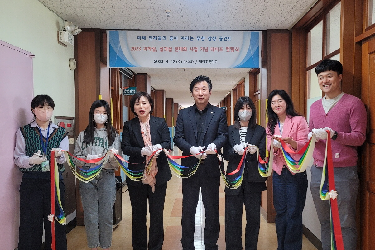□ 대이초등학교(교장 신경희)는 2023년 4월 12일(수) 13시 40분 지능형 과학실 구축 사업 완료를 기념하여 개관식을 가졌다.