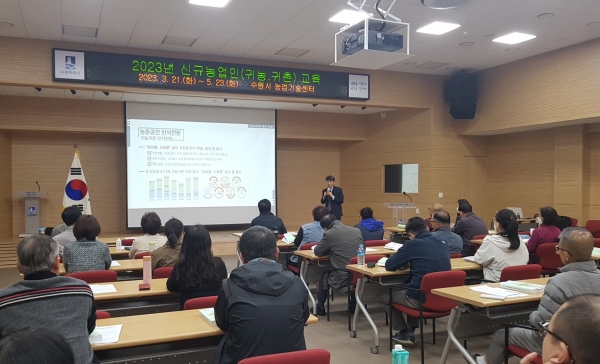 [금요저널] 수원시농업기술센터가 수원시 신규농업인, 귀농·귀촌 희망자 등 32명으로 대상으로 5월 23일까지 ‘2023년 신규 농업인 교육’을 한다.